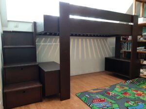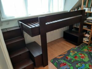 Voor mijn kinderen en enkele vrienden of klasgenoten van hen heb ik meubels voor hun slaapkamer gemaakt. Het zijn combinaties van bedden, kasten en werkplekken. De kamers zijn meestal niet groot, dus er moeten ruimtebesparende oplossingen gebruikt worden.