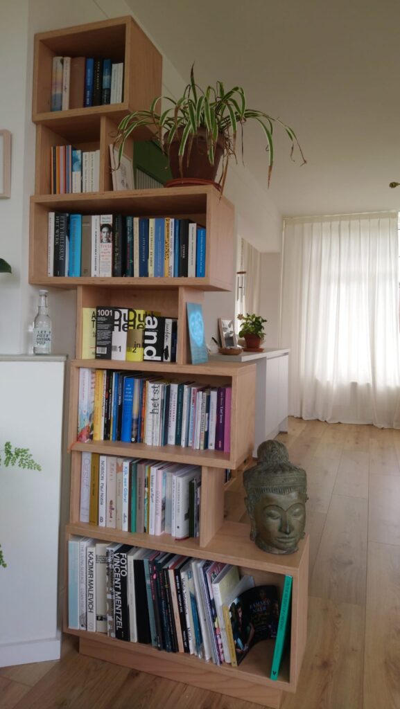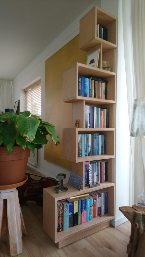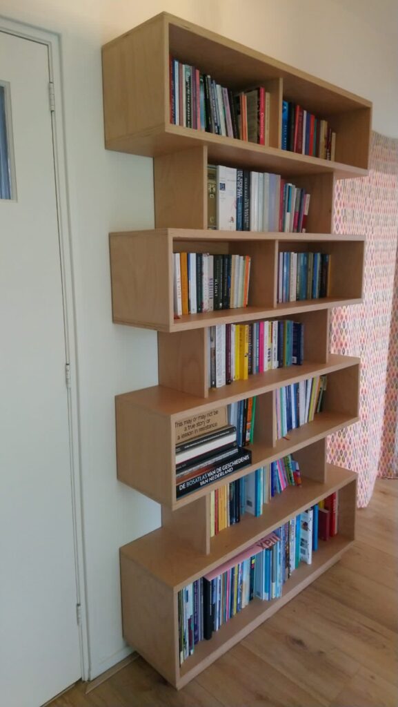 Boekenkasten voor particulier (2024). Uitgevoerd in beukenmultiplex.